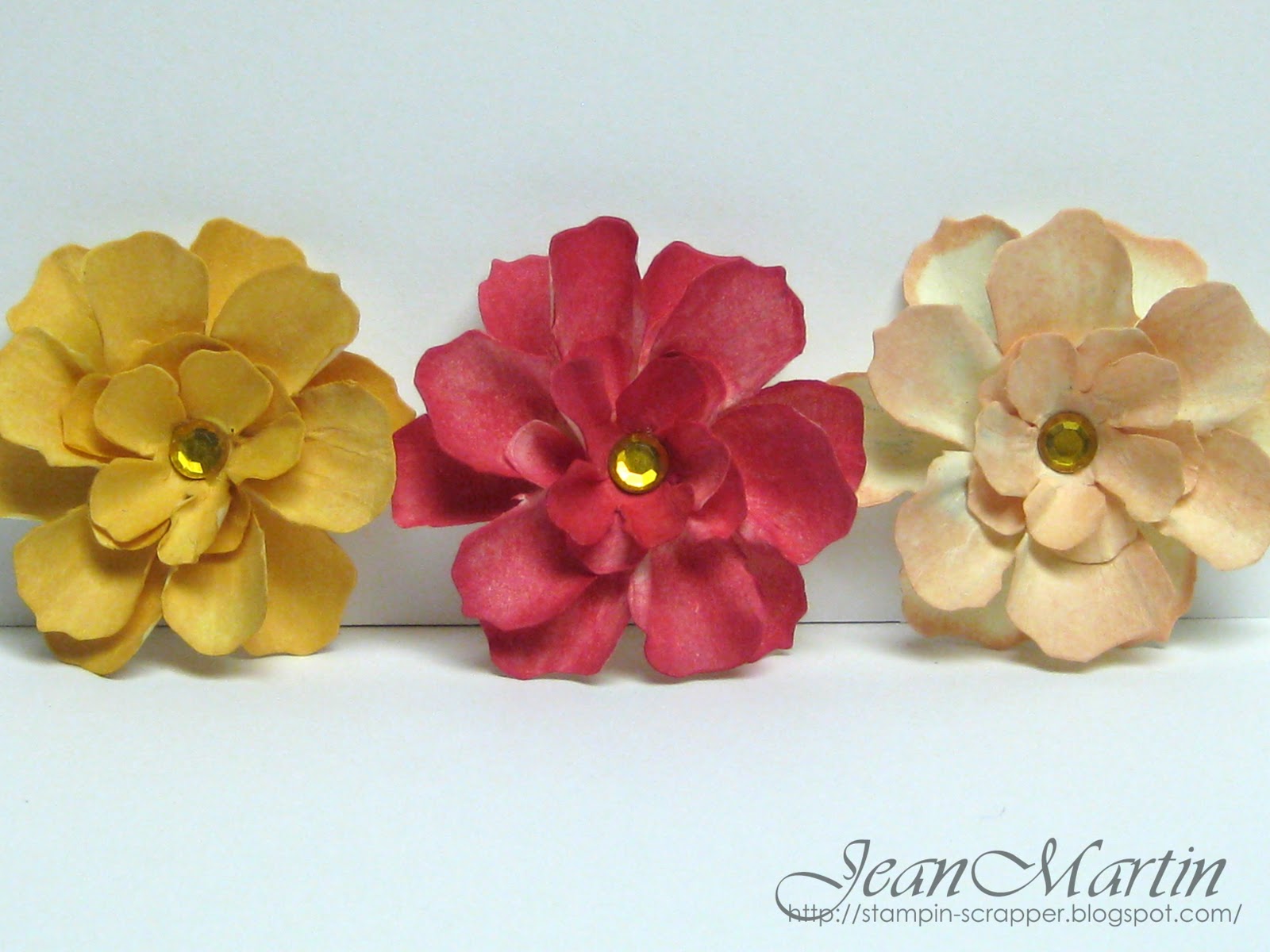 Speaking of paper flowers, here's another one I made. I used the EK Success 1 inch flower punch for this one. You can make all sorts of flowers with ANY flower punch or die...at least I think you can. (Haven't really tried it yet!) You just have to play around with how you distress the petals.